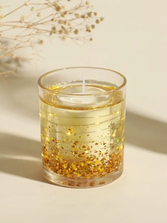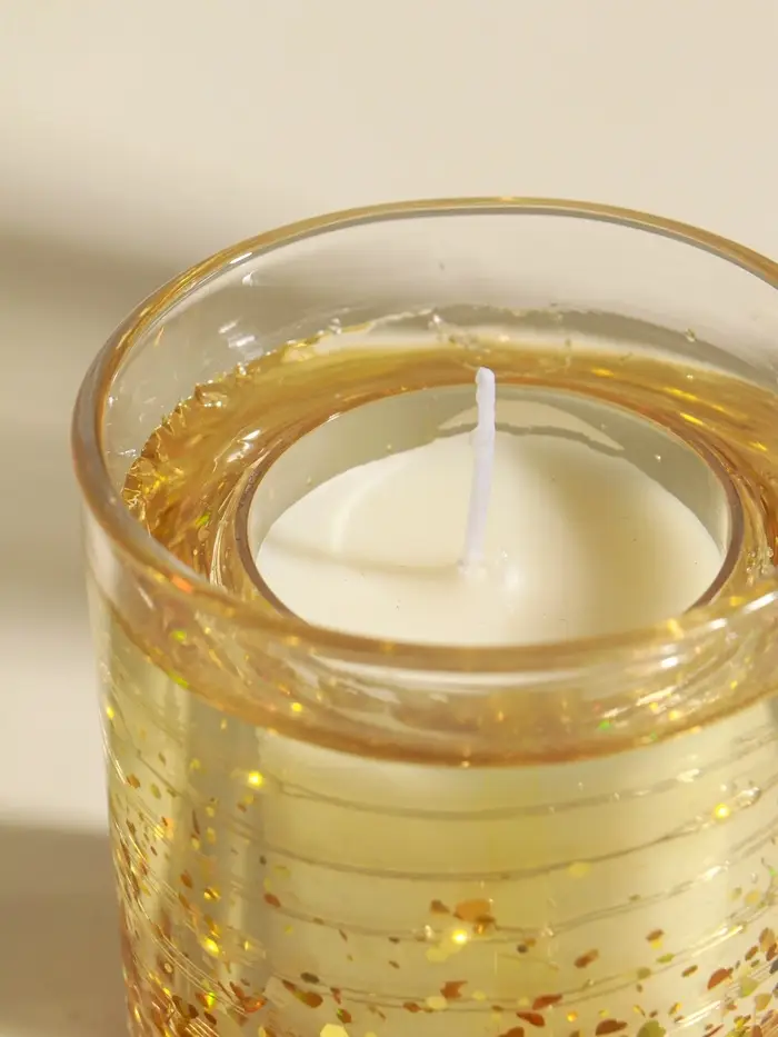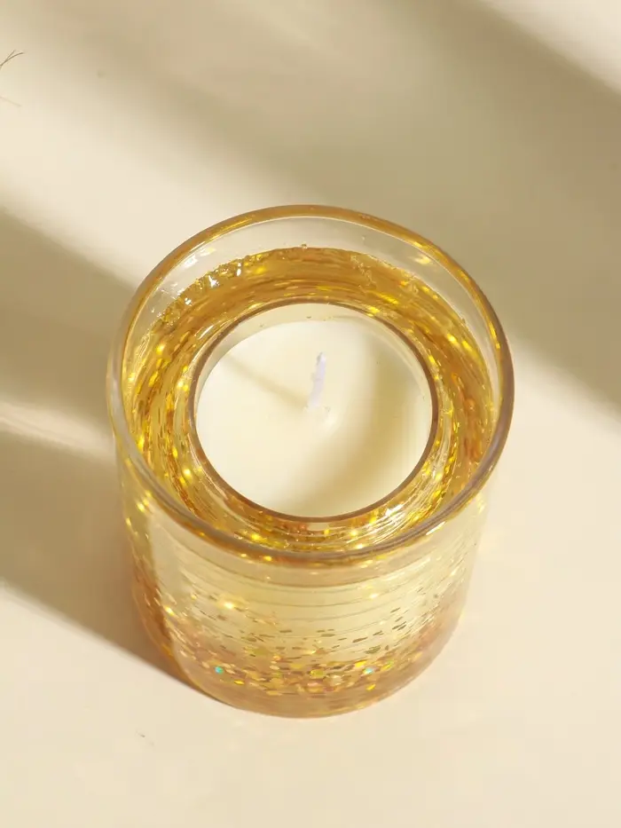 Свеча интерьерная в стакане с LED-подсветкой "Золотые звёздочки" 8х8х9 см