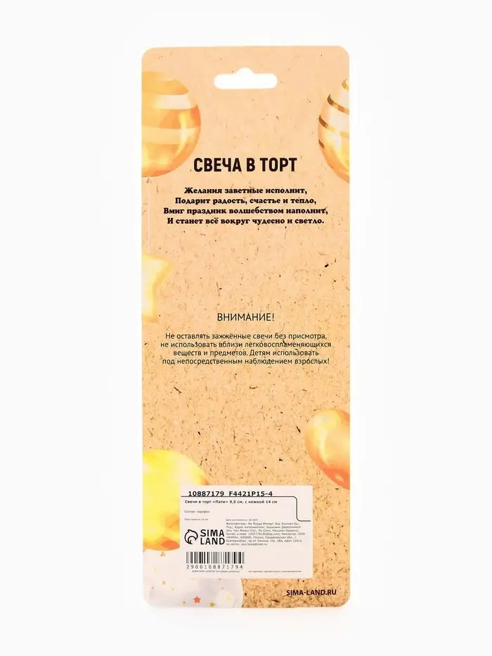 Свечи для торта «Пати» 9,5 см, с ножкой 14 см