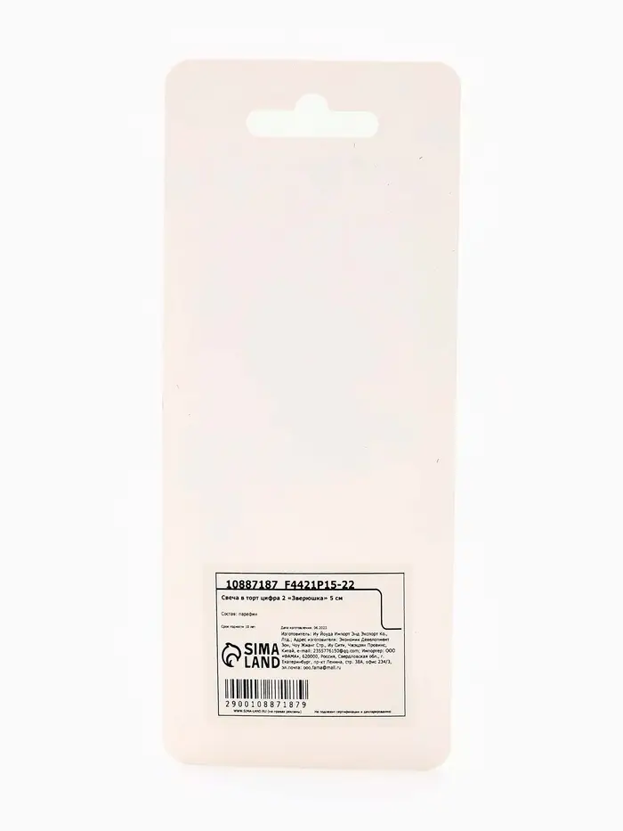 Свеча для торта цифра 2 «Зверюшка», 5 см