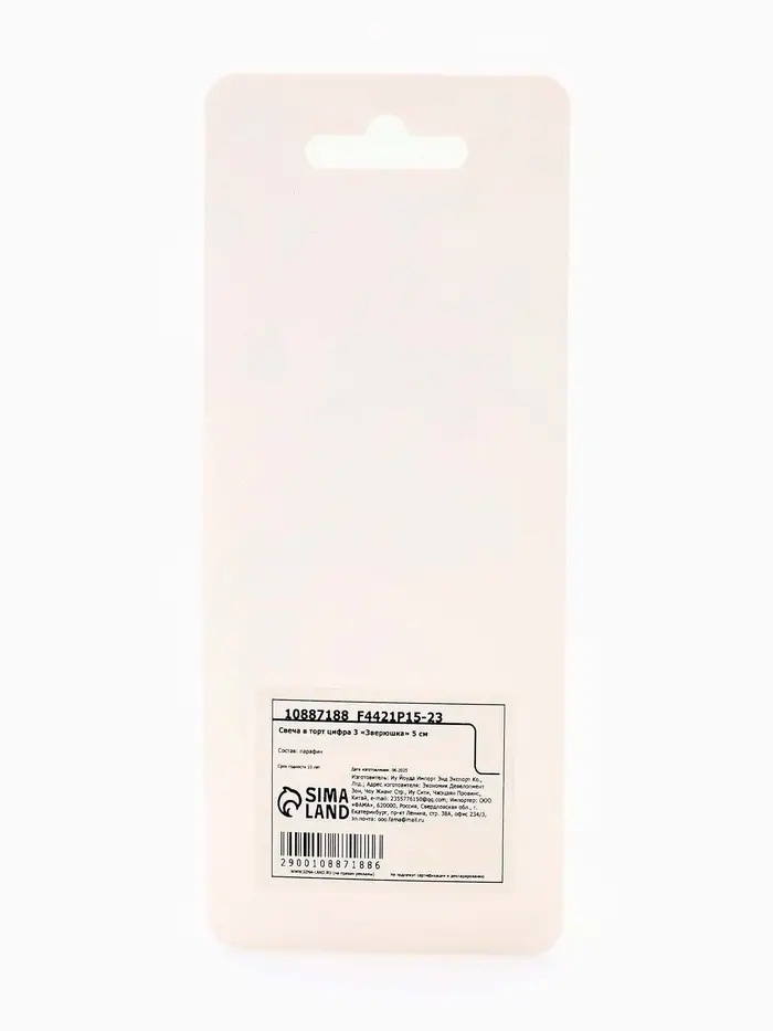 Свеча для торта цифра 3 «Зверюшка», 5 см