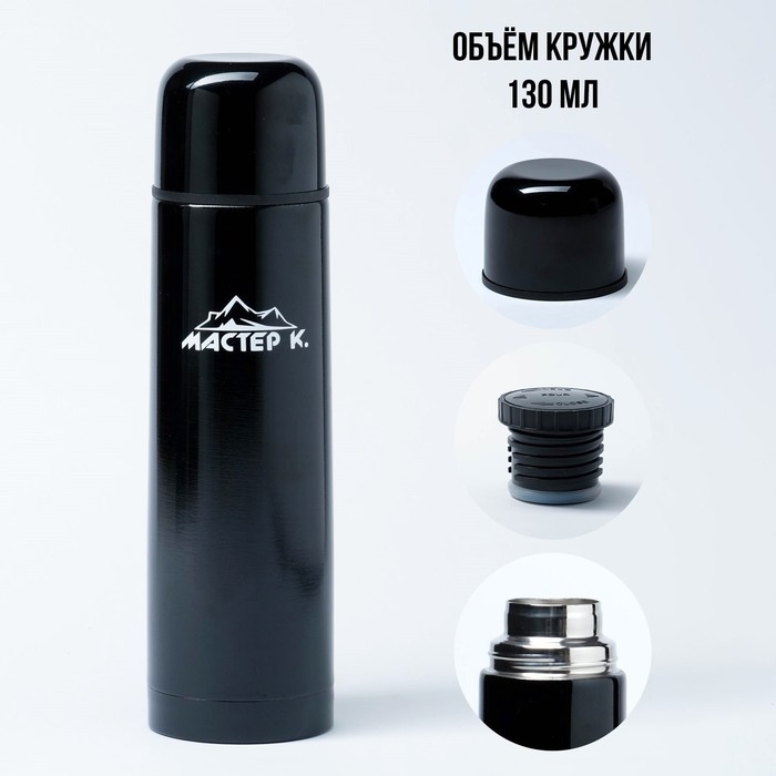 Термос, 750 мл, Гильза "Мастер К", с кружкой, сохраняет тепло 24 ч, гарантия 5 лет, чёрный