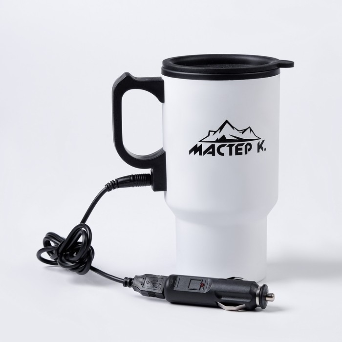 Термокружка, 450 мл, Автомобильная "Мастер К", сохраняет тепло 4 ч, 12х17см, белая