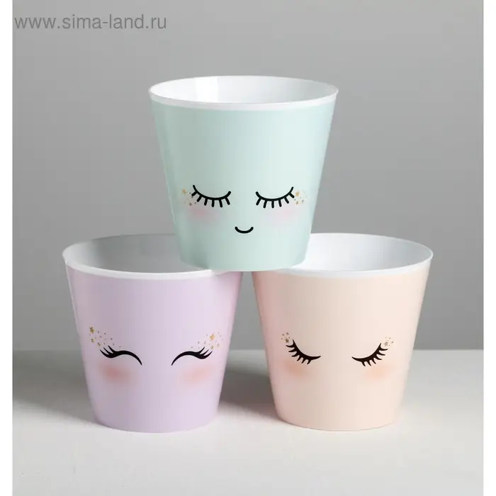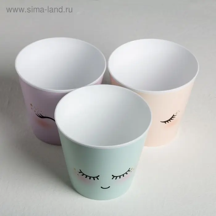 Набор кашпо для цветов 3 в 1 «Милые глазки», 0,8 л, 11 х 12 см