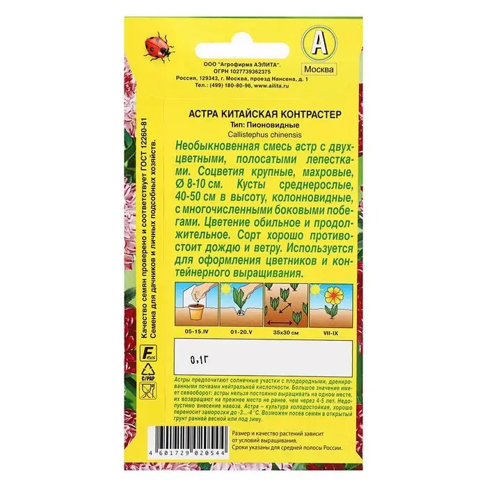 Семена цветов Астра "Седая Дама", красная, карликовая, Сем. Алт, ц/п, 0,1 г