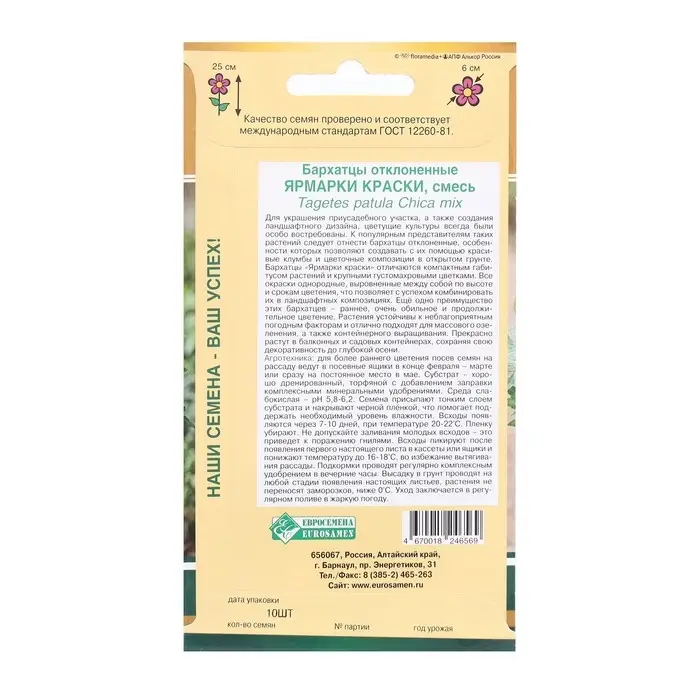 Семена Цветов Бархатцы отклоненные Ярмарки Краски, смесь, 10 шт