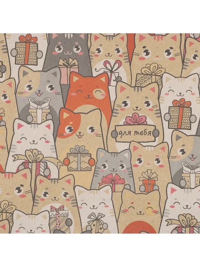 Бумага упаковочная крафтовая «Котики с подарками», 1 лист, 70 х 100 см