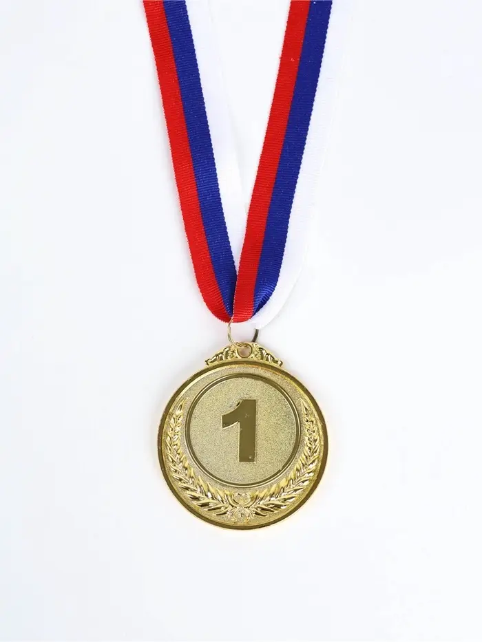 Медаль призовая 200 диам 6,5 см. 1 место. Цвет зол. С лентой
