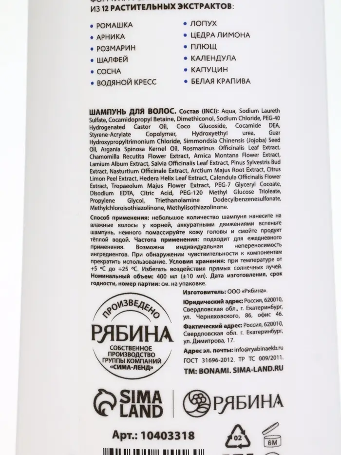 Шампунь для волос «Против выпадения», 400 мл, BONAMI