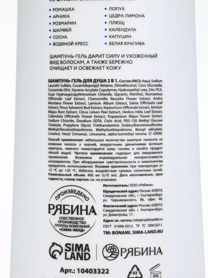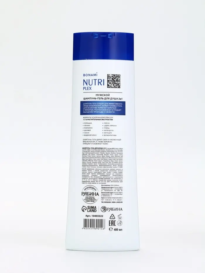 Шампунь для волос «Мужской 2в1», 400 мл, BONAMI