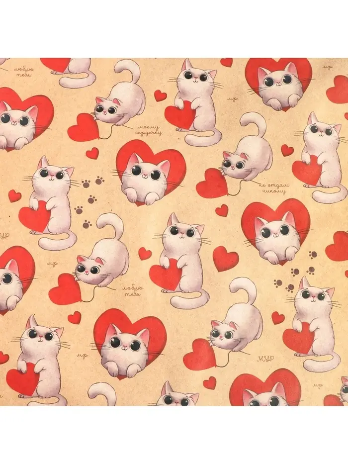 Бумага упаковочная крафтовая «Моему сердечку», 50 х 70 см