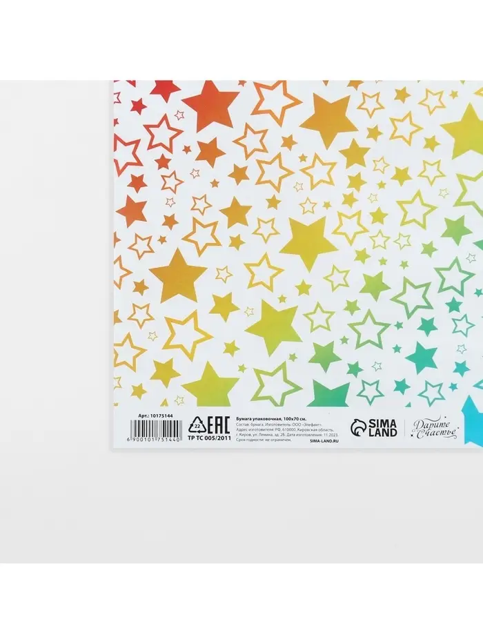 Бумага упаковочная глянцевая «Радужные звезды», 70 х 100 см