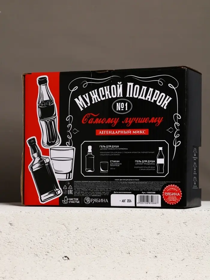 Набор "Мужской подарок", гель для душа виски, гель для душа кола, стакан для виски
