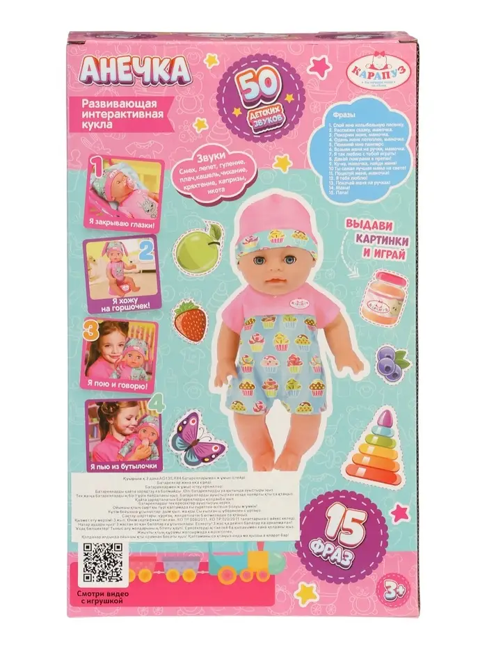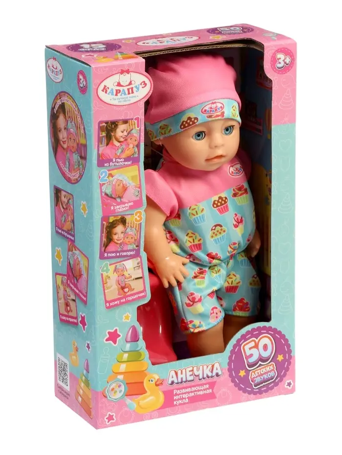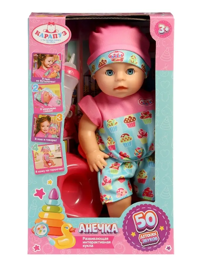 Кукла интерактивная "Анечка" озвуч 30 см, пьет, писает, закр. глазки, 2 акс, 50 звуков Y30BB-WOPVC-C
