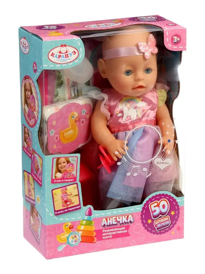 Кукла интерактивная "Анечка" в нарядном платье 30см пьет, 50 звуков Y30BB-MID-KITTEN-25-RU