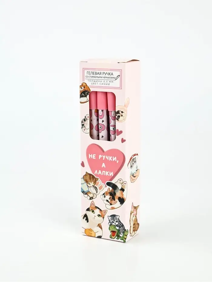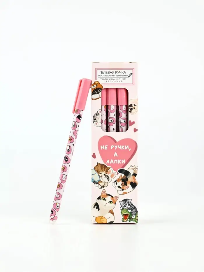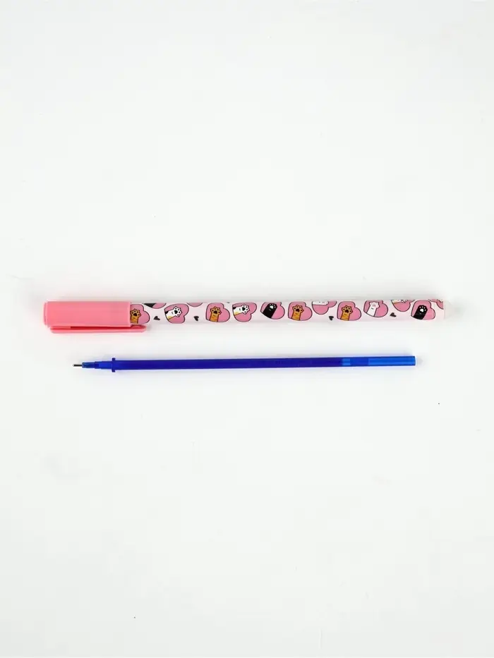 Ручка пластик пиши-стирай с колпачком "Не ручки, а лапки", синяя паста, гелевая 0,5 мм