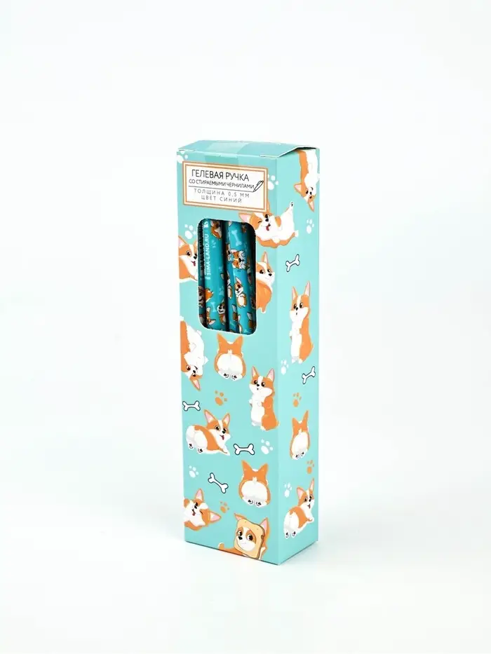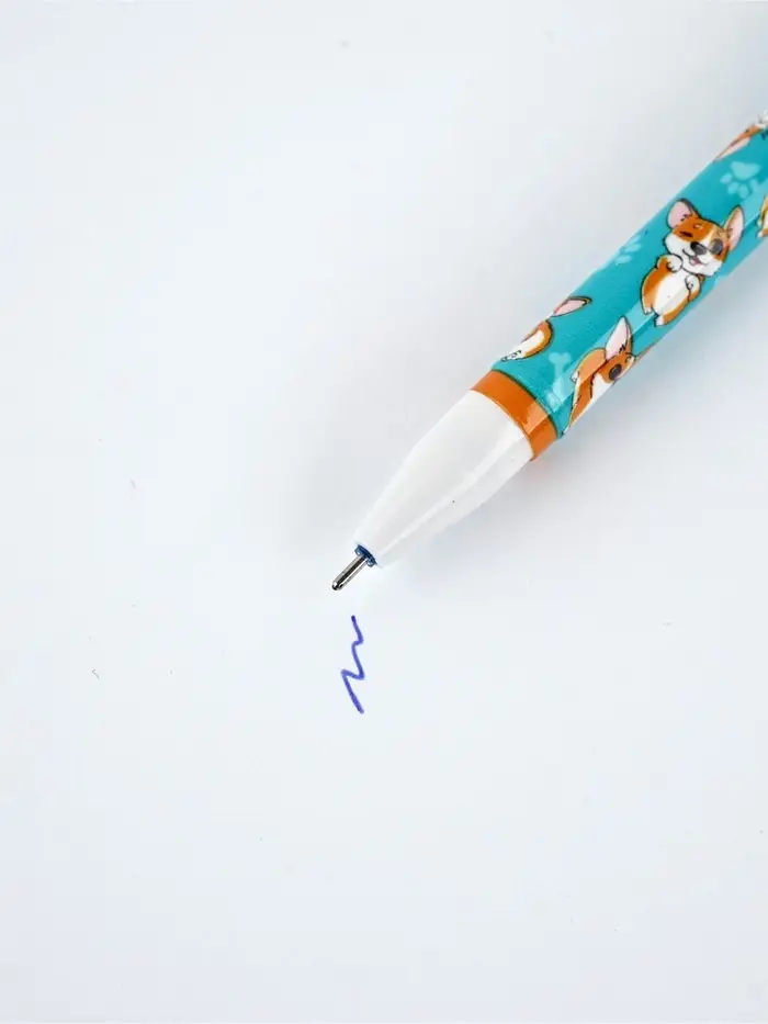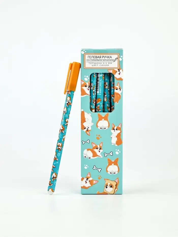 Ручка пластик пиши-стирай с колпачком "Корги", синяя паста, гелевая 0,5 мм