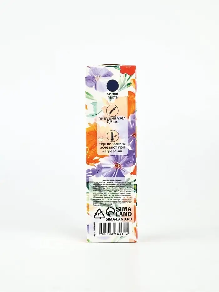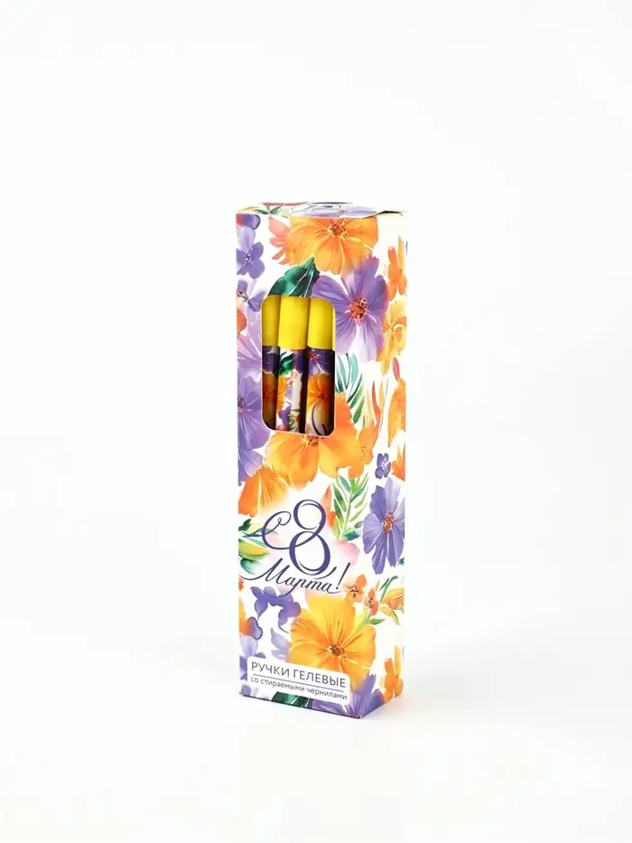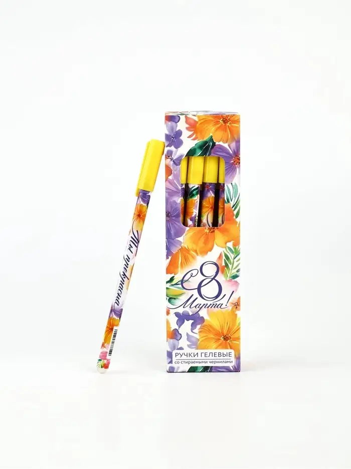 Ручка пластик пиши-стирай с колпачком "С 8 Марта!", синяя паста, гелевая 0,5 мм