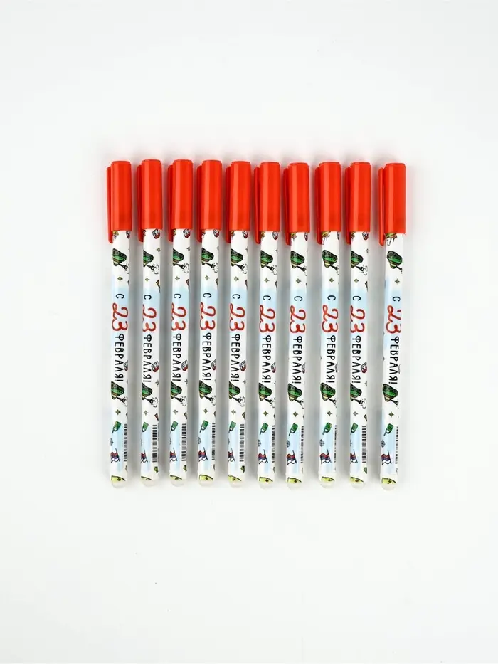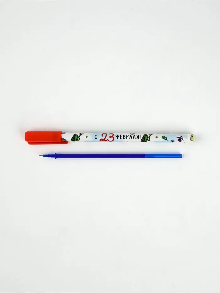 Ручка пластик пиши-стирай с колпачком "С 23 февраля!", синяя паста, гелевая 0,5 мм