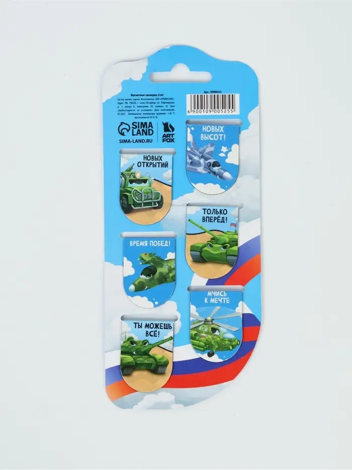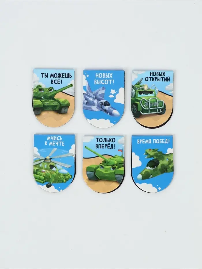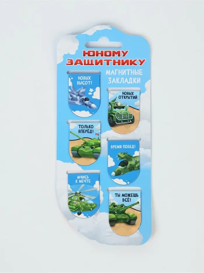 Закладки магнитные для книг, 6 шт "Юному защитнику"