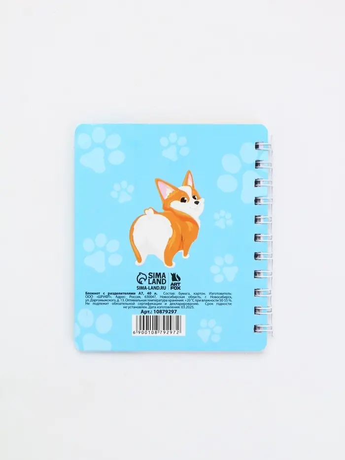 Блокнот с разделителями А7, 40 л "Корги"