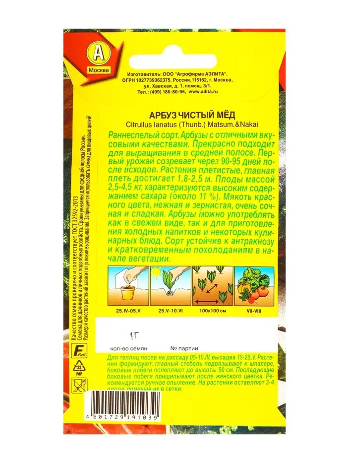 Семена Арбуз Чистый мёд, Ц/П,1 г