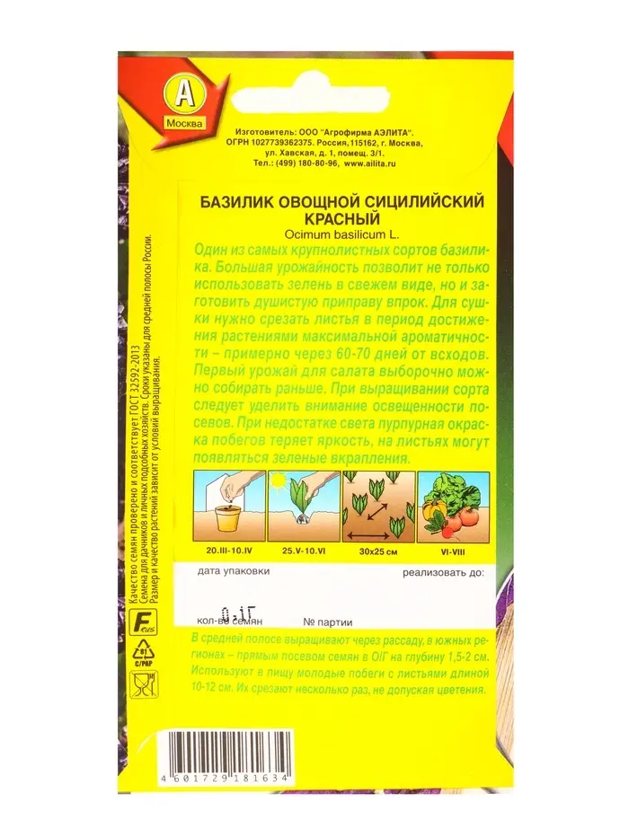 Семена Базилик овощной Сицилийский красный Популярные пряности, Ц/П,0,1 г