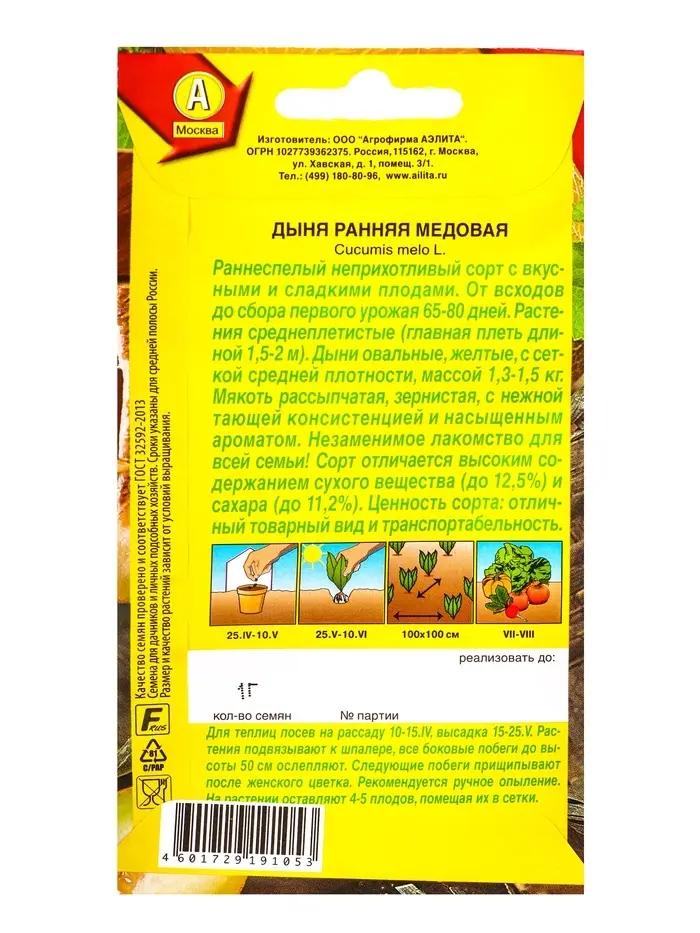 Семена Дыня Ранняя медовая, Ц/П,1 г