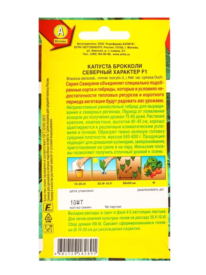 Семена Капуста брокколи Северный характер F1 Северяне, Ц/П,10 шт.