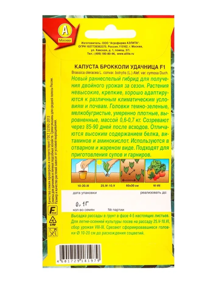 Семена Капуста брокколи Удачница F1, Ц/П,0,1 г