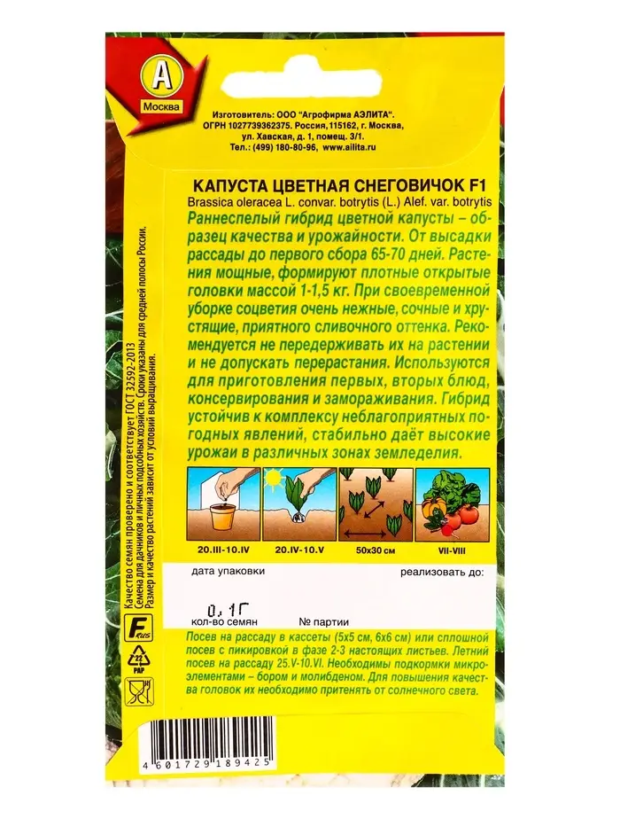 Семена Капуста цветная Снеговичок F1, Ц/П,0,1 г