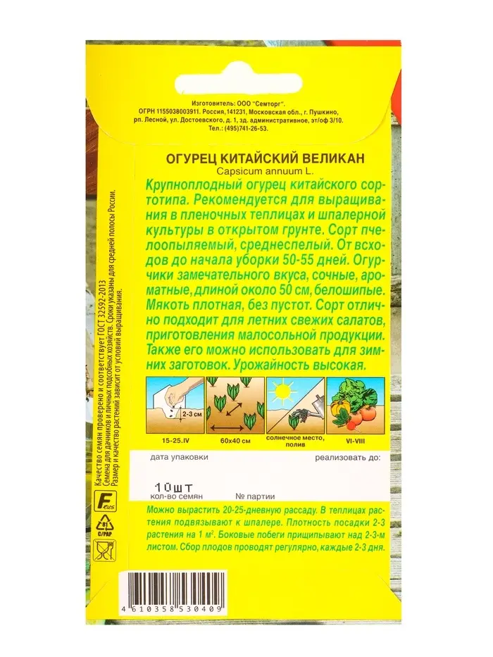 Семена Огурец Китайский великан Семторг, Ц/П СТ,10 шт.