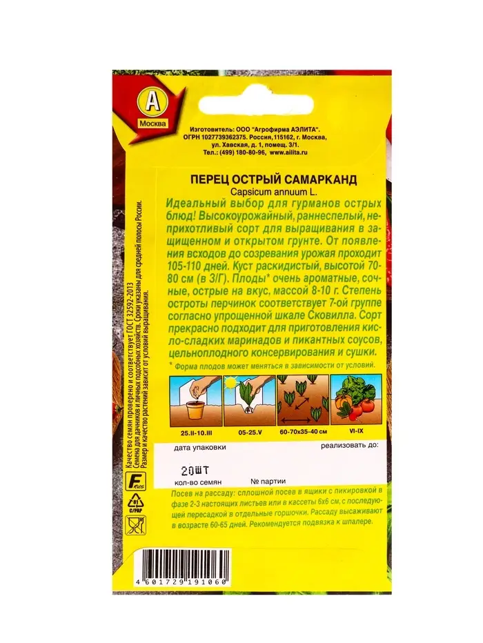 Семена Перец острый Самарканд, Ц/П,20 шт.