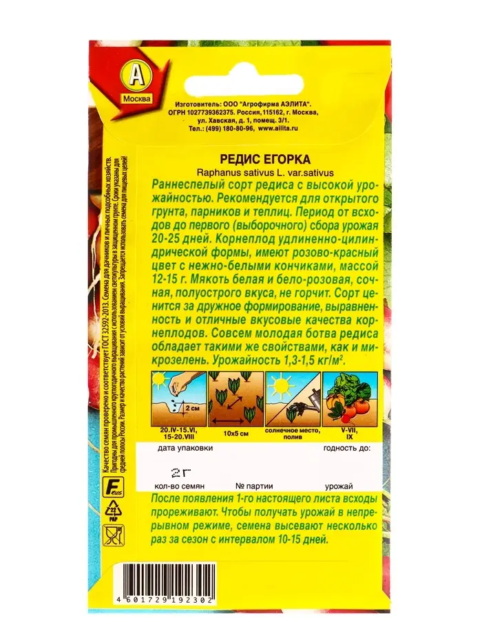 Семена Редис Егорка, Ц/П,2 г