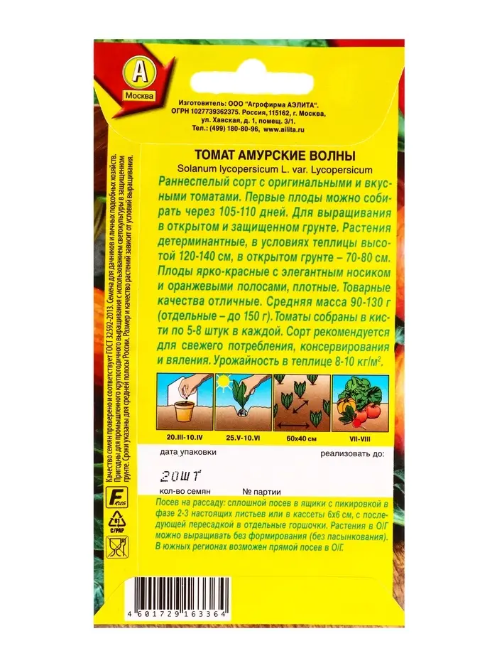 Семена Томат Амурские волны Ср, Ц/П,20 шт.