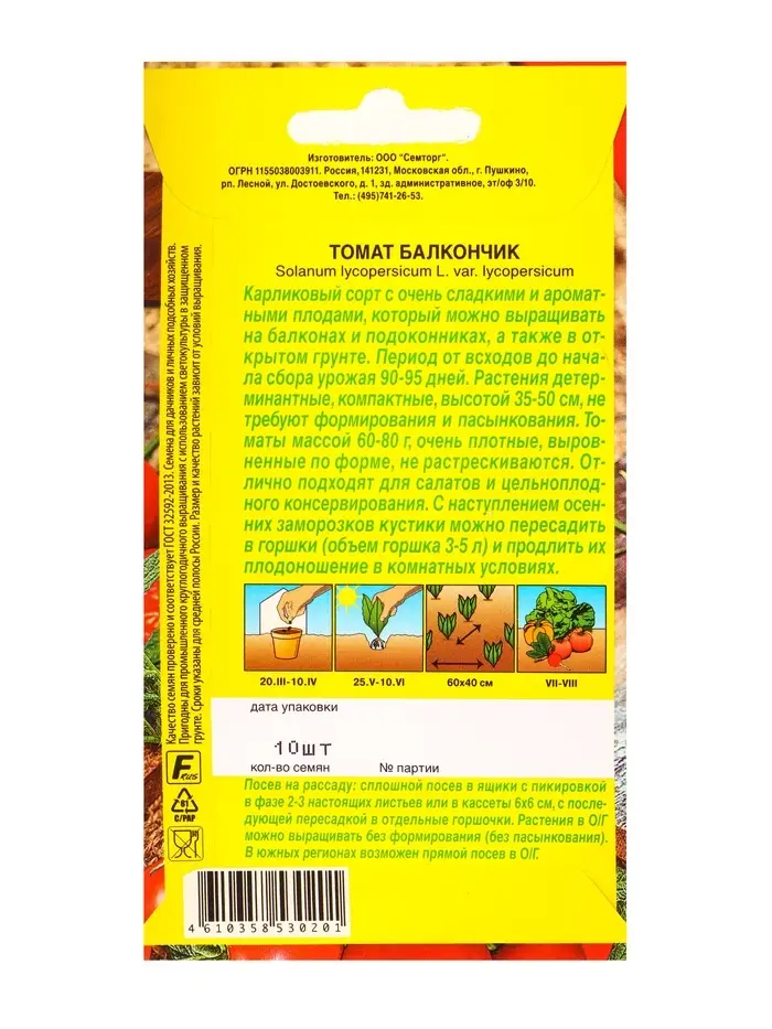 Семена Томат Балкончик Семторг, Ц/П СТ,10 шт.