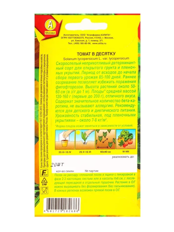 Семена Томат В десятку Р, Ц/П,20 шт.