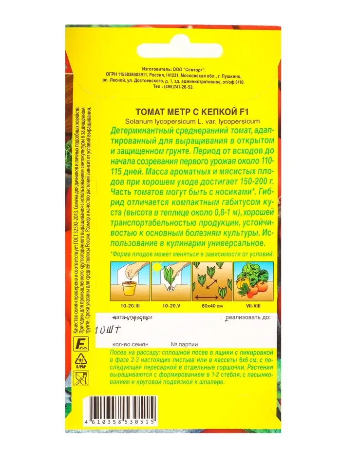 Семена Томат Метр с кепкой F1 Семторг, Ц/П СТ,10 шт.