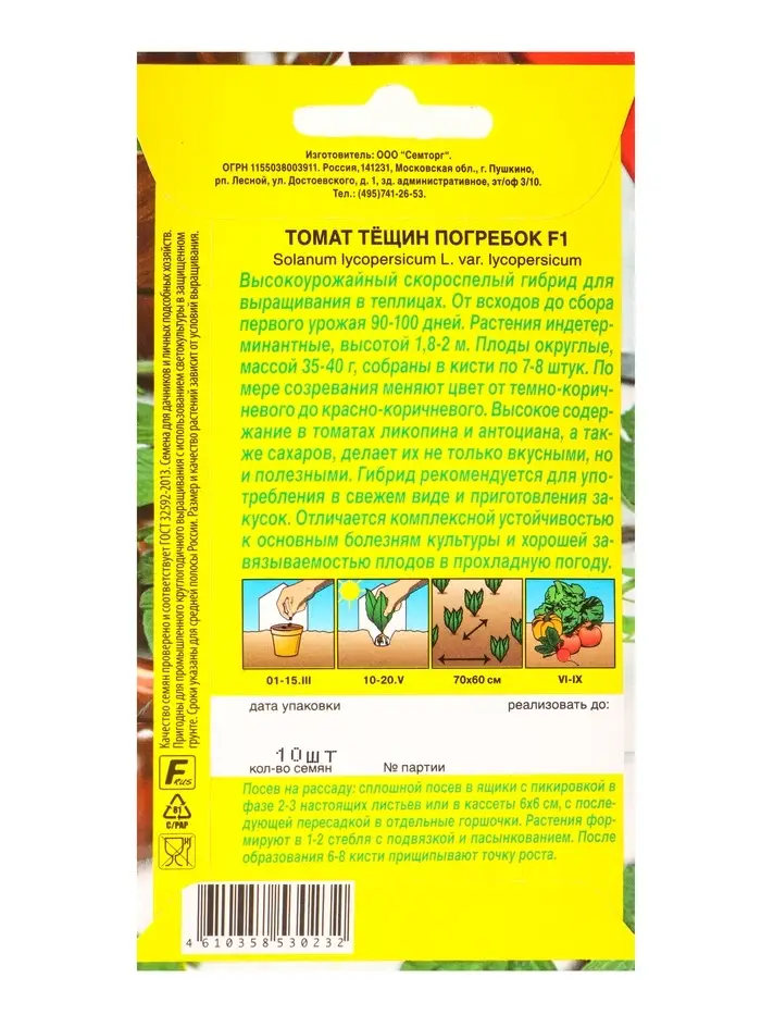 Семена Томат Тёщин погребок F1 Семторг, Ц/П СТ,10 шт.