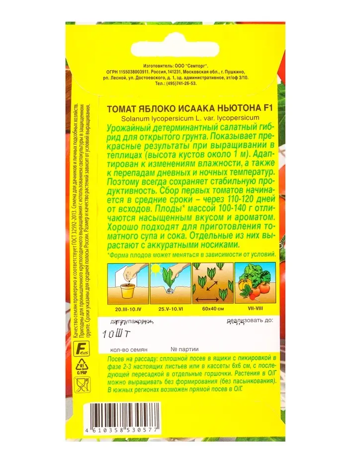 Семена Томат Яблоко Исаака Ньютона F1 Семторг, Ц/П СТ,10 шт.