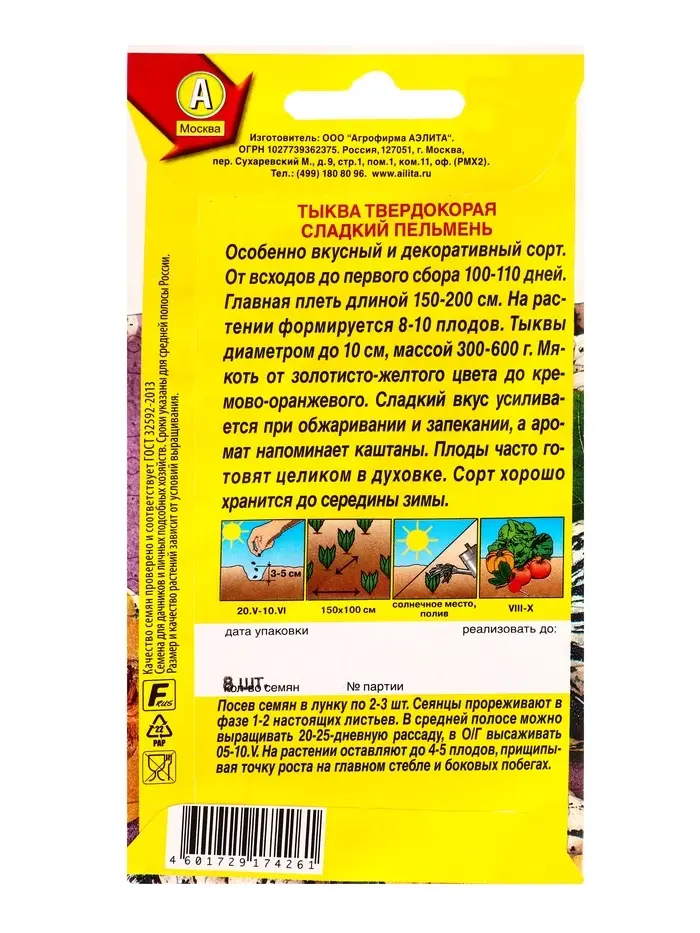Семена Тыква твердокорая Сладкий пельмень Диковинные овощи, Ц/П,8 шт.