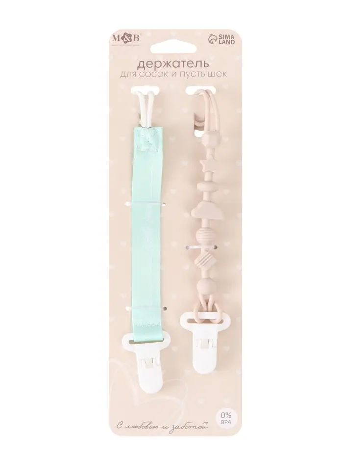 Держатель для соски пустышки, 2 шт, текстиль и силикон, Mum&Baby