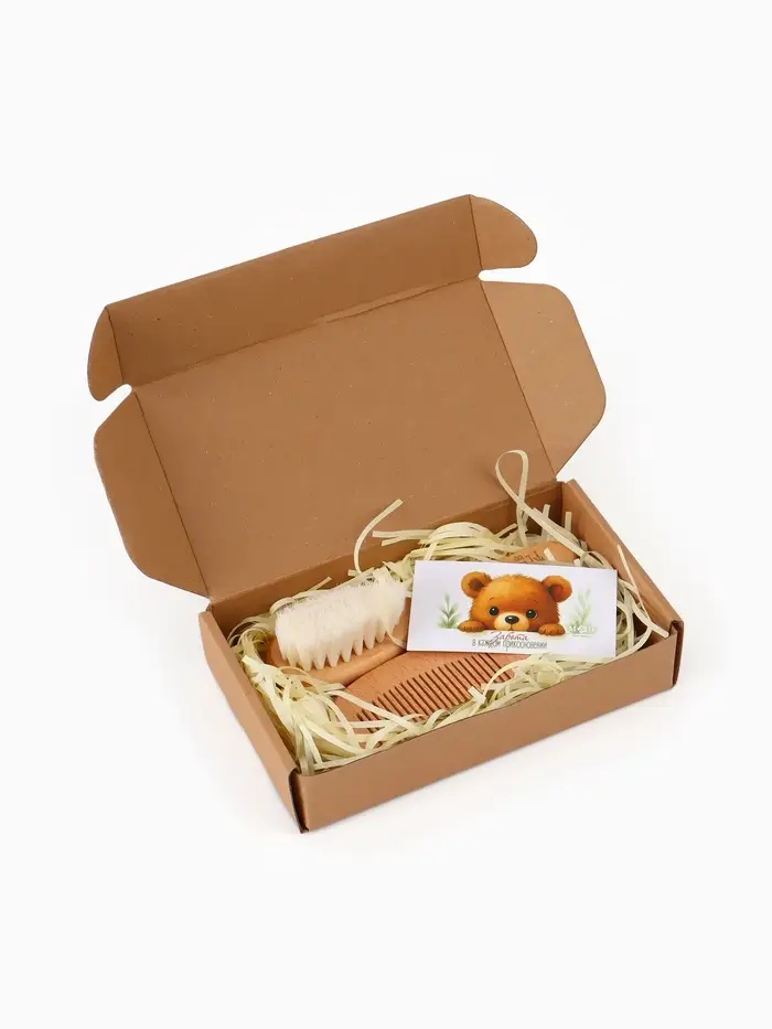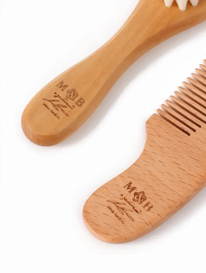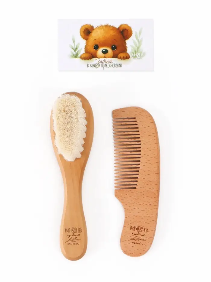 Набор деревянных расчесок детских с натуральной щетиной, 2 шт в коробке, M&B