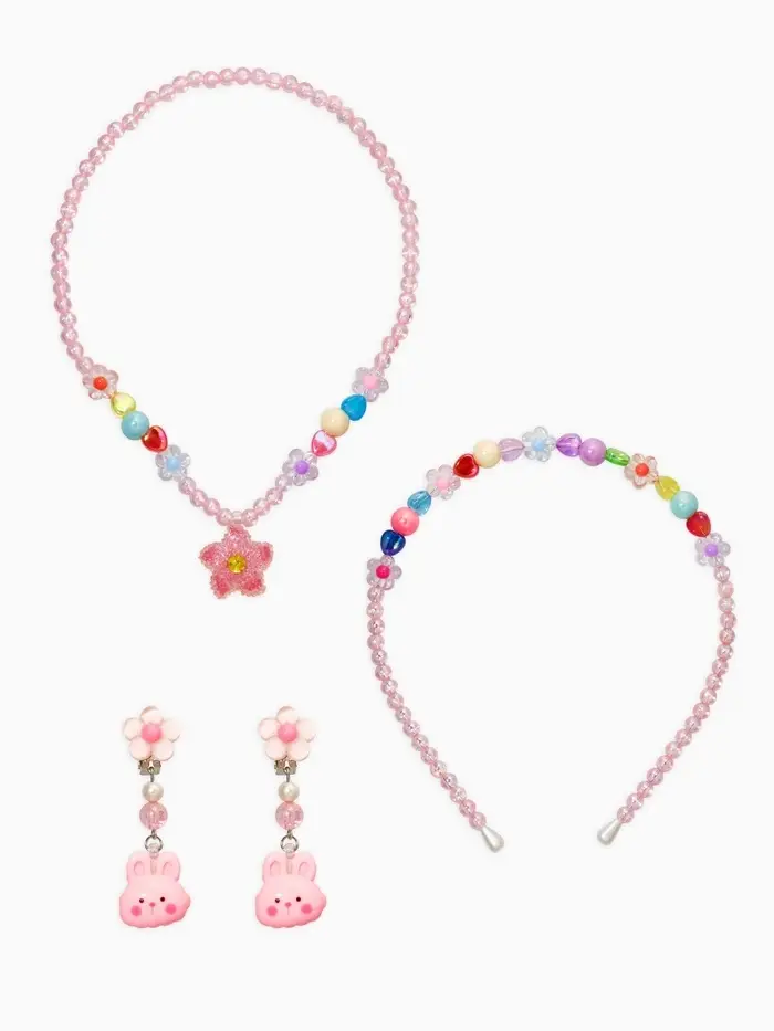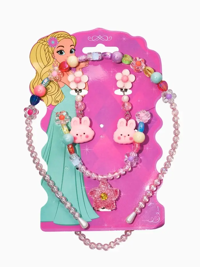 Комплект детский «Выбражулька» 3 предмета, клипсы, бусы, ободок, крлики, цветной