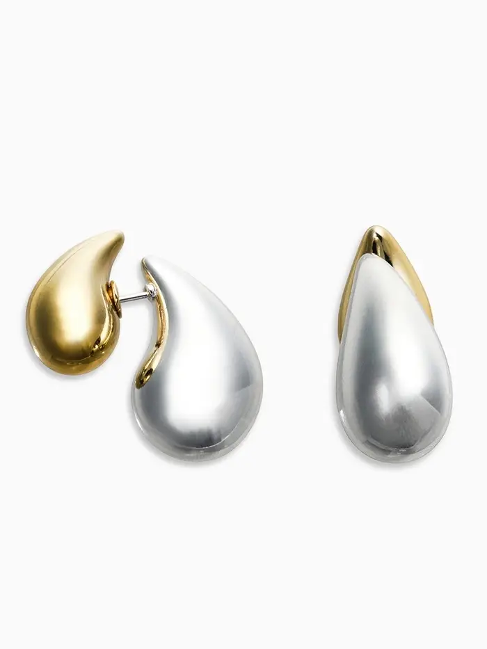 Серьги "Капли Бо" двойные, цвет золотисто-серебристый