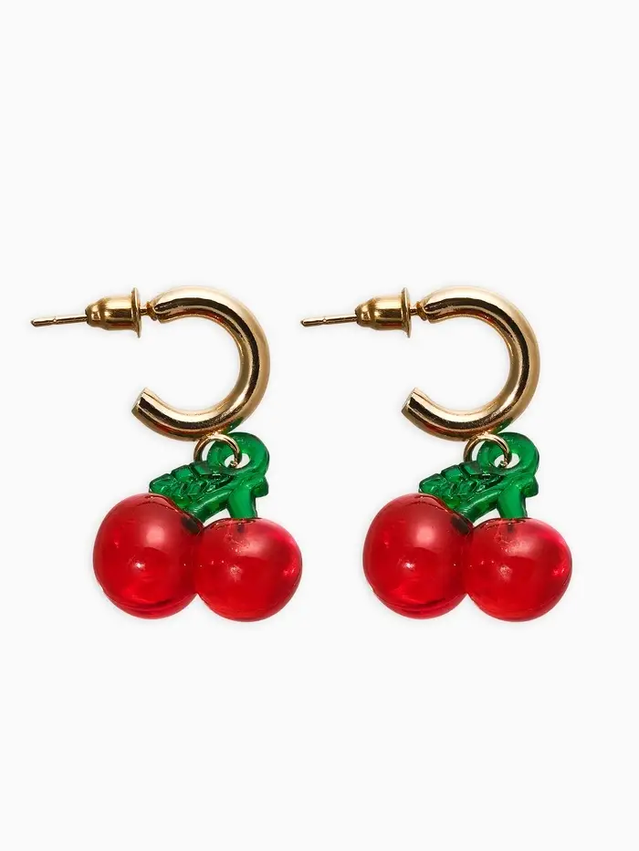 Серьги-кольца "Вишенки" легкие, цветные в золоте