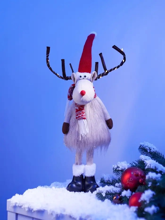 Фигура текстиль «Новогодний лосик» 58 см, 10 LED, от батареек CR2032×1, свечение тёплое белое