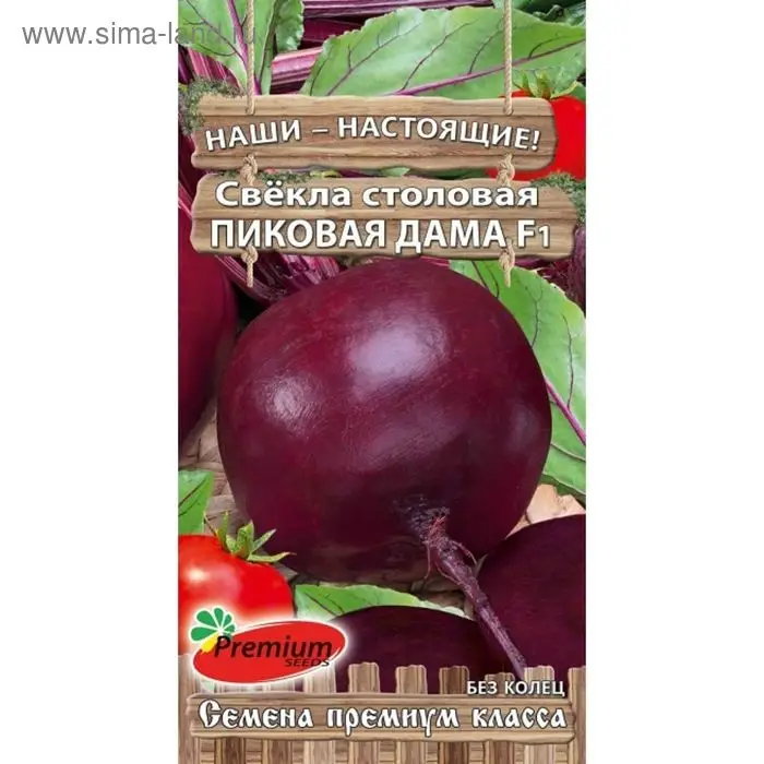 Столовая свёкла «Пиковая дама» — это новый среднеспелый высокоурожайный гибрид. Округлые бордовые корнеплоды массой 120–150 г обладают сладким вкусом и нежной, сочной мякотью, не светлеющей при термическом воздействии. Сорт прекрасно подходит для всех видов переработки, его отличают повышенная лёжкость и устойчивость к цветушности.
