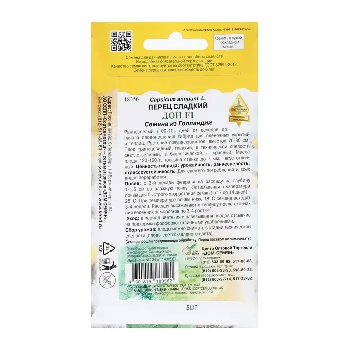 Семена Перец "Джипси F1" сладкий, 5 шт
