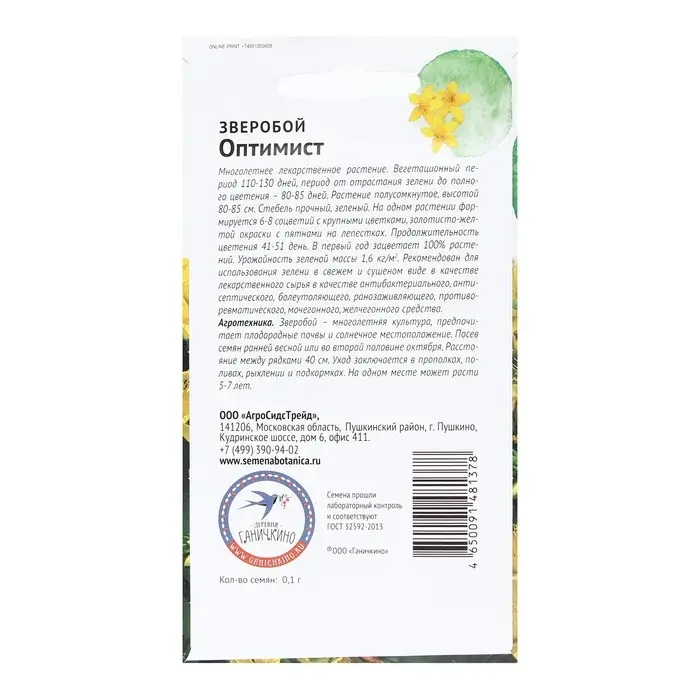 Семена Зверобой "Оптимист", 0,1 г