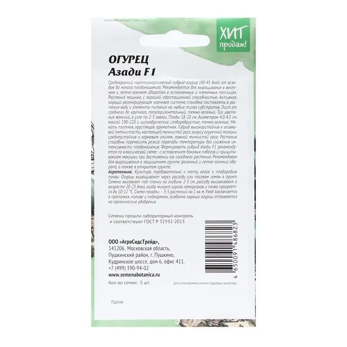 Семена Огурец "Азади", 5 шт